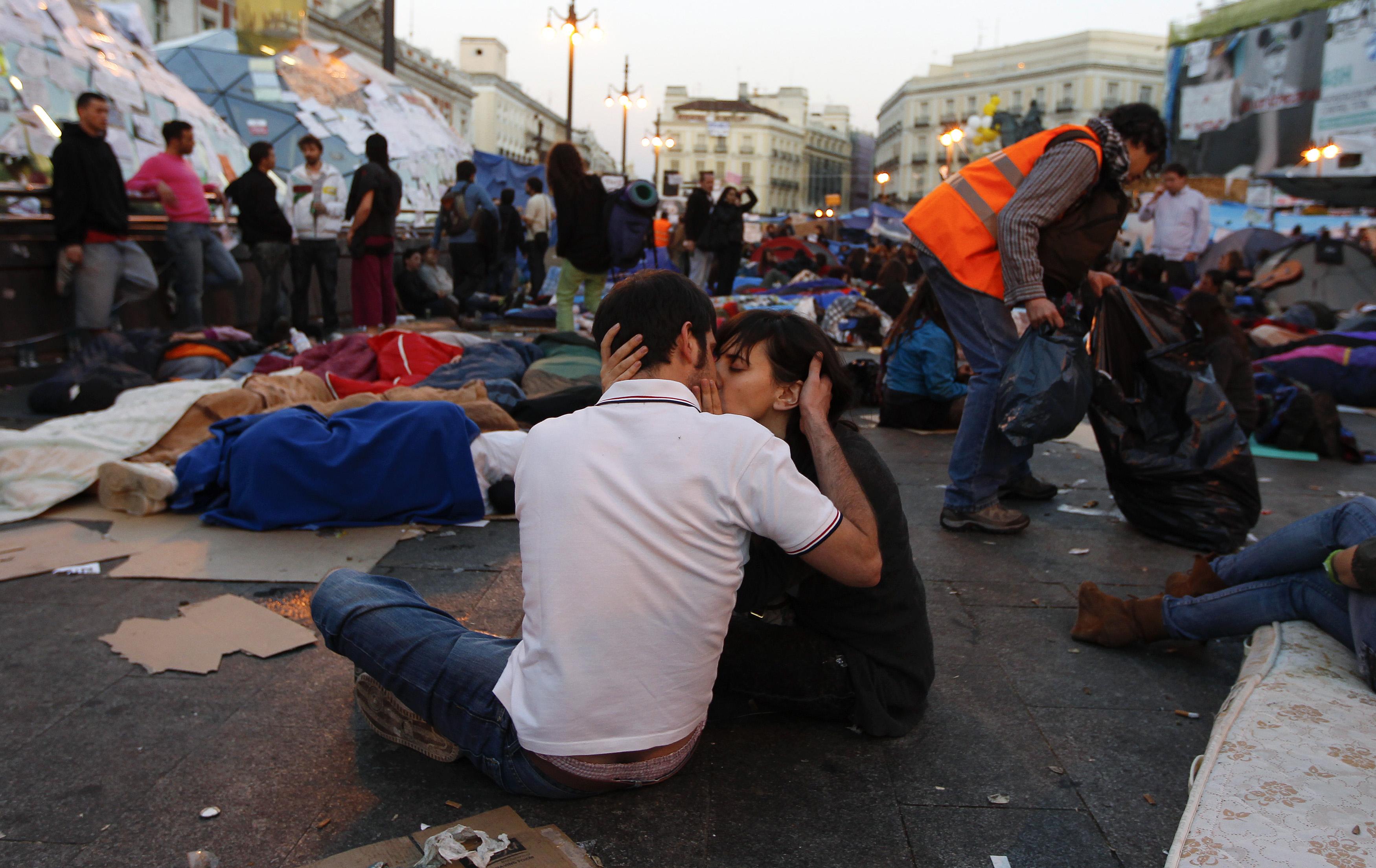 Δεν πενθούμε είναι σχεδόν πάρτι αλλά ειρηνικά, οπότε δεν μπορούν να μας καταστείλουν μας ανακοίνωσαν ότι λόγω εκλογών θα μας απαγορεύσουν την κινητοποίηση τους απαντήσαμε οτι θα μείνουμε εδω με καθιστικές διαμαρτυρίες όταν η ανεργία αγγίζει το 40% δεν έχουμε περιθώρια πάνω απο 50 πόλεις τώρα συμμετέχουν απαιτούμε όπως θα διαβάσετε και στο μανιφέστο μία ηθική επανάσταση. Αντί να τοποθετούμε τα χρήματα πάνω τους ανθρώπους, ας τα φέρουμε στην υπηρεσία των ανθρώπων. Είμαστε άνθρωποι, όχι προϊόντα. Προσπαθούμε να ενημερώσουμε τον κόσμο σε όλες τις γλώσσες, ακόμα και στις πιο δύσκολες όπως η δική σας χάρη στη δύναμη του ίντερνετ μας βλέπετε και εσείς ζωντανά!Είμαστε ενωμένοι και οργανωμένοι !!